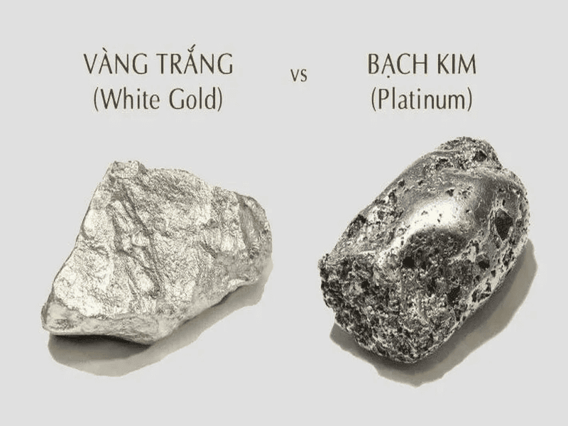 Vì bạch kim là kim loại hiếm và có quy trình khai thác phức tạp, giá trị của nó cao hơn so với vàng trắng. Mặc dù vàng trắng cũng có giá trị lớn, nhưng giá của nó thường phụ thuộc vào tỷ lệ vàng nguyên chất trong hợp kim.